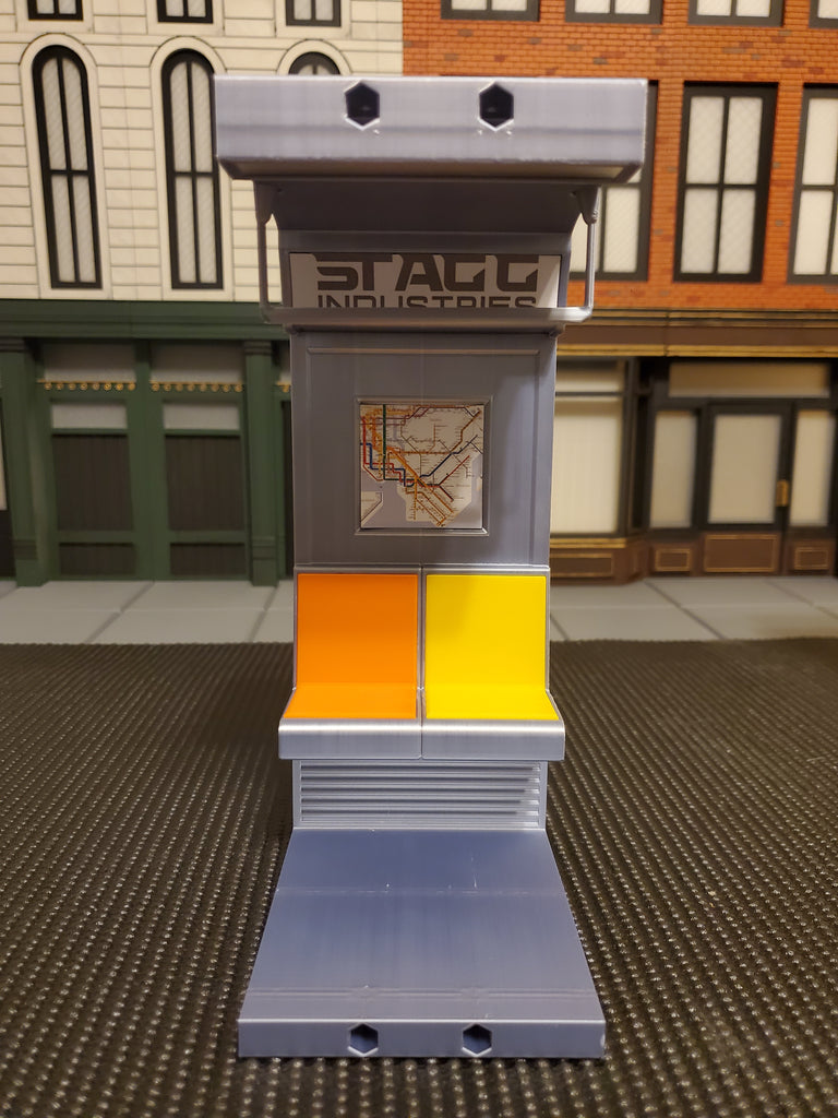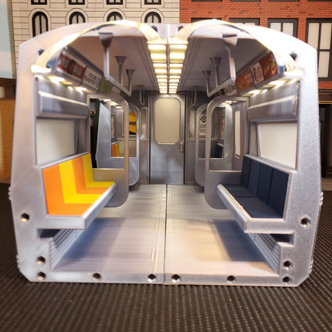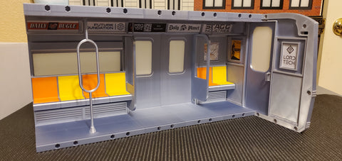 Step into the future of urban transit with this Subway Car Diorama! This modular masterpiece features your choice of colored seats, banners, wall posters and maps, with an optional section to insert LEDs that bring the underground station to life.